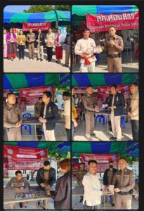 พ.ต.ท.บุญเลิศ ศิริทอเเสง รอง ผกก.ป.สภ.คอนสาร พร้อมชุดปฏิบัติการชุมชนสัมพันธ์ ร่วมจัดบูธกิจกรรมให้ความรู้ โทษ พิษภัยบุหรี่ สุรา ยาเสพติด ผู้ป่วยจิตเวช ประชาสัมพันธ์ช่องทางการรับแจ้งเหตุฯและแจกแผ่นพับฯ คู่มือประชาชน-สติ๊กเกอร์รวมเบอร์โทรสายด่วนแจ้งเหตุฉุกเฉิน กลโกงอาชญากรรมออนไลน์ทางเทคโนโลยี และมอบถุงยังชีพ-ผ้าห่ม ในโครงการศูนย์ดำรงธรรมอำเภอยิ้ม…เคลื่อนที่ ณ วัดแก่นจันทร์ บ้านโนนหว้านไพร ม.7 ต.ดงบัง อ.คอนสาร จ.ชัยภูมิ