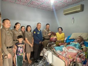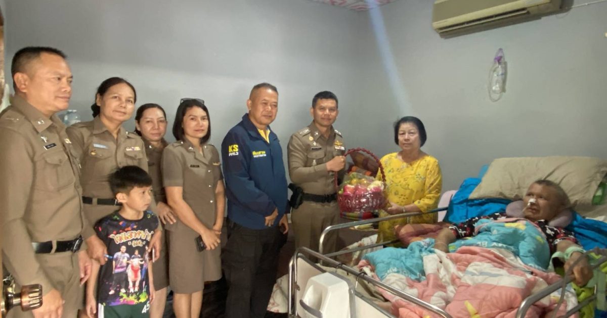 ซึ่งล้มป่วย เส้นเลือดในสมองแตก พร้อมมอบกระเช้า เพื่อเป็นขวัญกำลังใจ ให้กับข้าราชการตำรวจ