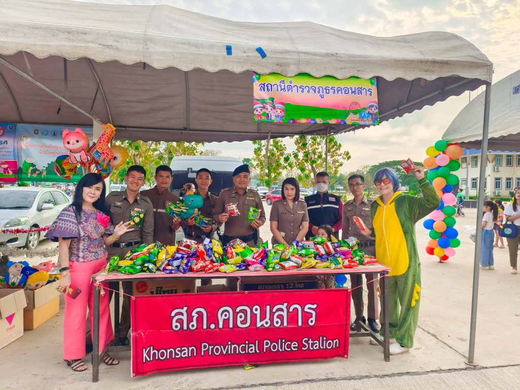 วันเสาร์ที่ 13 ม.ค.67 พ.ต.ท.ผดุงศักดิ์ นนขุนทด สว.อก.ฯ พร้อมตำรวจชุด ชมส.และข้าราชการตำรวจในสังกัด ร่วมจัดบูทนำขนมไปเเจกในกิจกรรมวันเด็ก 2567 ที่หอประชุม อ.คอนสาร, โรงเรียนบ้านน้ำพุปางวัว และโรงเรียนองค์การอุตสาหกรรมป่าไม้ 19 สวนป่าคอนสาร