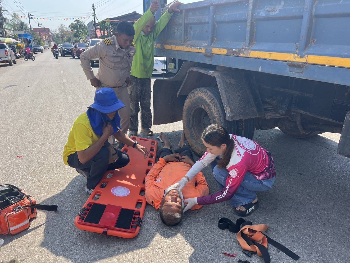 สายตรวจจราจร ได้รับแจ้ง จากศูนย์วิทยุสื่อสาร สภ.คอนสาร ว่ามีเหตุ ว.40 รถจักรยานยนต์ชนกับรถหกล้อ ถนนราษฎร์เจดีย์