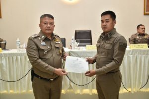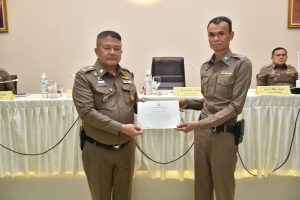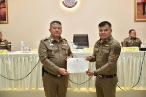 พล.ต.ต.สุจริต ปานเล็ก ผบก.ภ.จว.ชัยภูมิ มอบใบประกาศให้ทีมงานฝ่ายสืบสวนกรณีจับกุมผู้กระทำผิดคดียาเสพติด สามารถขยายผลต่อเนื่องได้ 4 คดี ยึดยาบ้ากว่า 25,000 เม็ด ยึดรถยนต์กระบะได้ 1 คัน เมื่อ 21 ม.ค.68